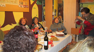 Την περασμένη Τετάρτη, 19 Δεκεμβρίου μαζευτήκαμε όλες σχεδόν οι Χρυσομέλισσες στην κυψέλη μας για να ανταλλάξουμε τις ευχές μας και τα δωράκια μας, να ακούσουμε τα κάλαντα και τα χριστουγεννιάτικα τραγούδια, στα Ισπανικά μάλιστα, απο την παρέα των συμμετεχόντων στα μαθήματα Ισπανικής γλώσσας και κουλτούρας και τέλος....να απολαύσουμε τα καλούδια του μπουφέ μας, κεφτεδάκια, τραγανές αραβικές πίτες με πιπέρι,ρίγανη και πάπρικα (σπεσιαλιτέ της Χρυσομέλισσας Μαρίας), τυρόπιττα, πατατοσαλάτα, κέηκ Χριστουγεννιάτικο, Πανετόνε, κέηκ σοκολάτας νηστίσιμο, κέηκ με τρούφα σοκολάτας, μελομακάρονα, χαλβά παρδοσιακό....χωρίς να παραλείψουμε βεβαίως να φωτογραφηθούμε........